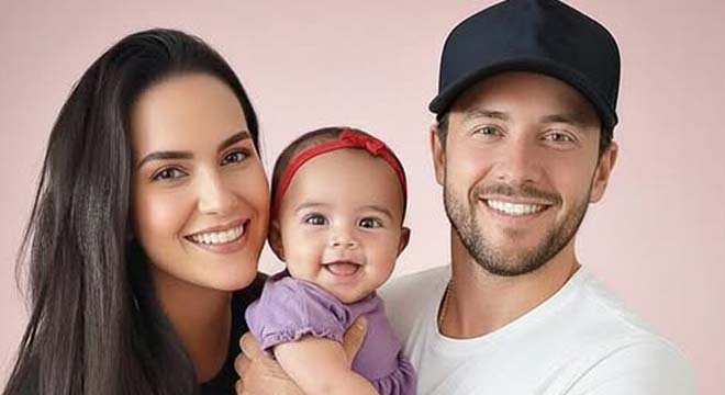 - Young couple put daughter inside the fir…