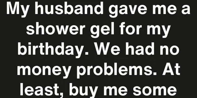 My husband gave me a shower gel for my birthday. I didn’t show it to him, but I got really offended, because we had no money problems.