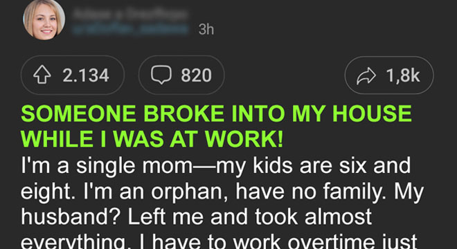 After talking to Sarah, I immediately called the police. No one was supposed to be home at that time, and no one had a spare key, so someone must’ve broken into my house.