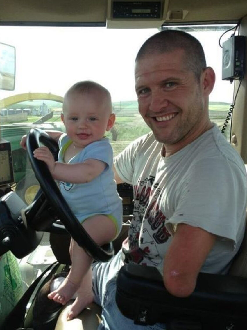 Callum lost his arm in a tractor accident when he was twenty-two.
