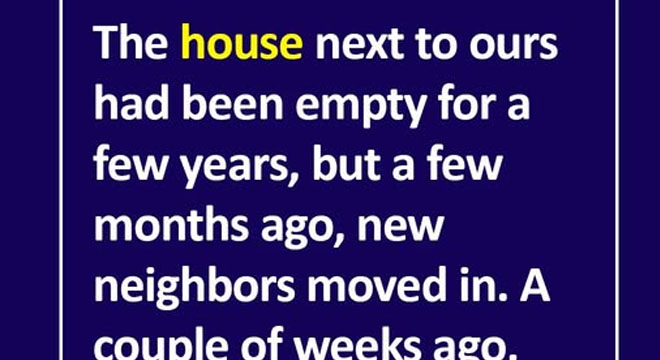 The house next to ours had been empty for years. But a few months ago it was sold, and our new neighbors moved in. We tried our best to make them feel welcome and even invited them over for dinner, but they refused.