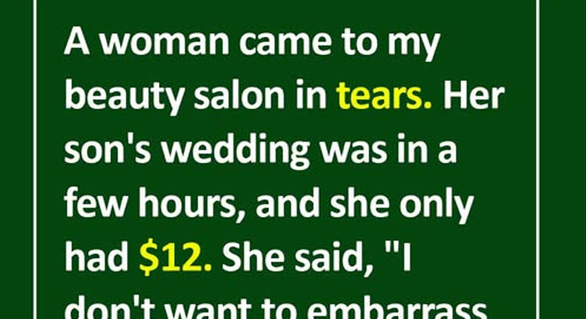 A woman came to my beauty salon in tears. Her son’s wedding was in a few hours, and she only had $12. She said, “I don’t want to embarrass him with my looks…” I sat her down, did her hair and makeup for free.