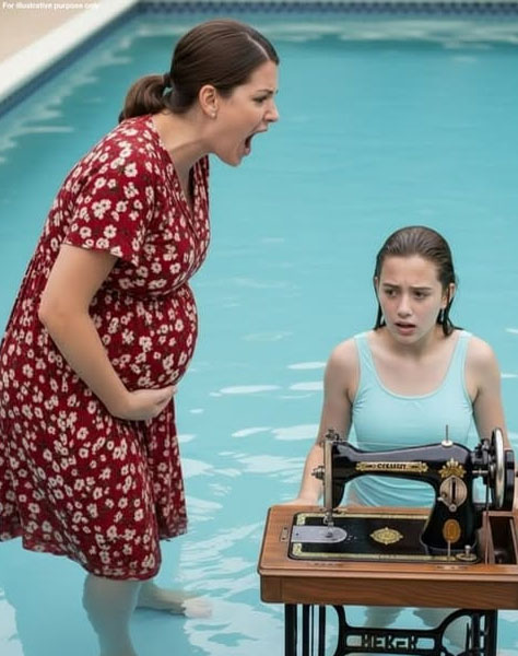 Lily dropped to her knees beside the pool, reaching helplessly toward the water as her sewing machine disappeared beneath the surface. It had taken her six months to save for it — babysitting, selling handmade tote bags online, cutting every corner she could. That machine was her dream, her escape.