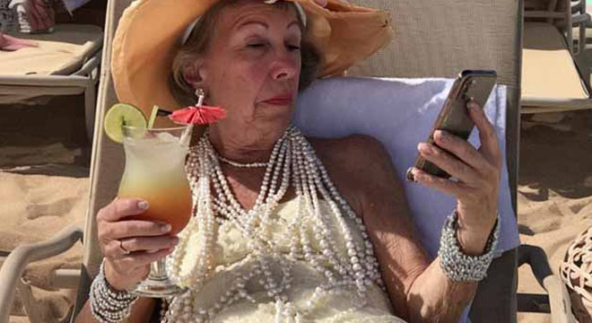 On day two, we were all out on the beach. Janet lounged beneath a wide umbrella like royalty, oversized sunglasses shielding her eyes and a drink resting in her hand.