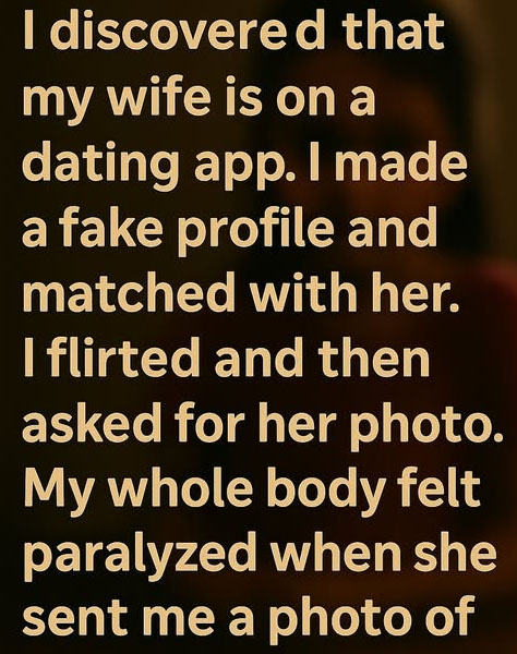 I discovered my wife was using a dating app. Hurt and curious, I created a fake profile and matched with her. We flirted for a few days. Then I asked her to send a photo. What she sent left me paralyzed—a photo from when she was 20. It was the first picture we had ever taken together… except I had been cropped out.