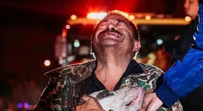 Mario dropped to his knees, gathering the dog into his arms. His hands shook as he pressed his forehead to Gordo’s, tears streaking through the soot on his face. In that moment, nothing else existed — not the house, not the car, not the loss. Just a man and his dog, reunited in the ashes.