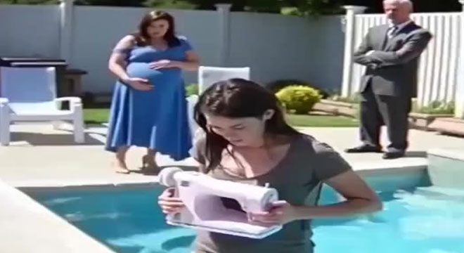 The silence stretched. Finally, Mark exhaled — long, defeated, almost ashamed. “I’ll get it out,” he muttered, stepping toward the pool.