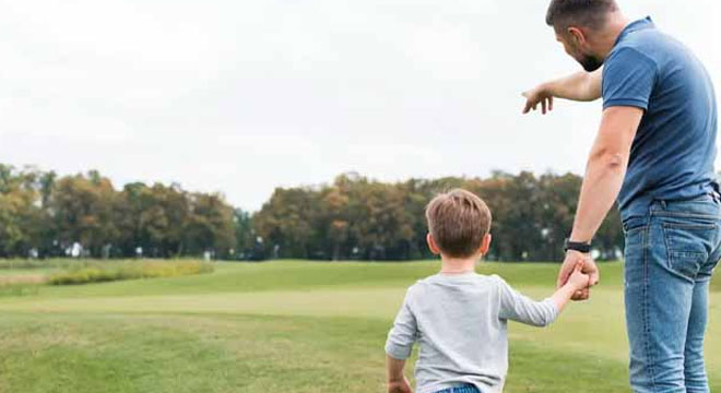 He looked down. “It’s a family. A dad and a kid and a dog.”