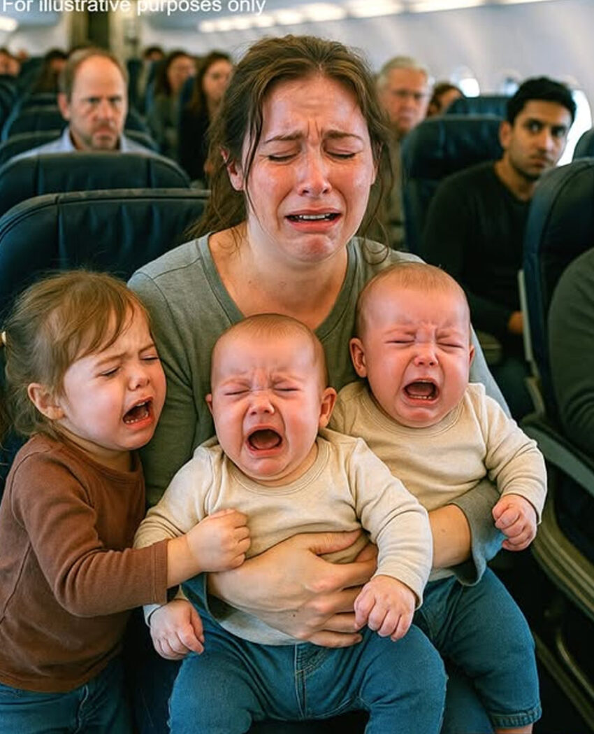 My husband and I had boarded the plane together with our three little ones—Emma, just two years old, and our twins, Noah and Grace, barely six months. From the start, things felt overwhelming. Emma was restless, wriggling in her seat and kicking the tray table. The twins were already fussing, their cries echoing in the cramped space.