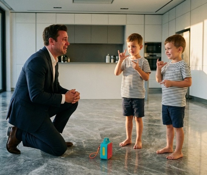 In a mansion frozen by grief, where laughter hadn’t been heard in years, lived two little boys trapped in silence: Noah and Ethan, deaf twins whose mother died the day they were born. Their father, billionaire William Carter, moved through the house like a ghost—present, but unreachable—believing nothing and no one could truly touch his sons.