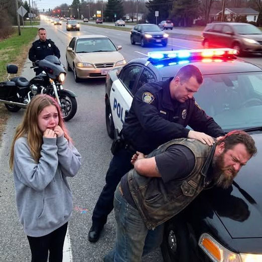 When I arrived, the scene made no sense. Emma’s car was pulled over. Two cruisers were parked nearby. And the biker—the man I’d been imagining as a threat—was standing casually with the officers, talking like they’d known each other for years.