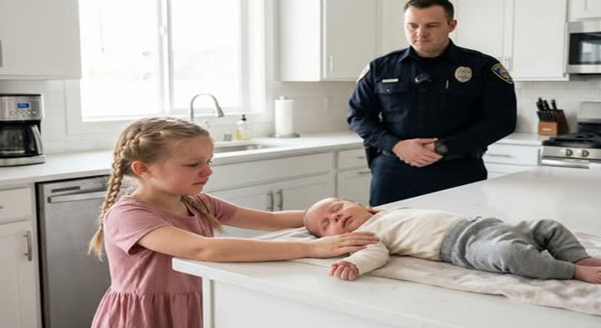 The dispatcher had heard every kind of fear, but a seven-year-old whisper stopped her cold: “My baby is fading.” The caller, Juni, said the weak infant was her brother Rowan—and that she was the one caring for him while their exhausted mother slept. Within minutes, Officer Owen Kincaid arrived at a tired-looking house where a child clutched a frail baby and begged him not to take him away. Rowan was severely underweight, and Juni had been trying to teach herself how to feed him using online videos.