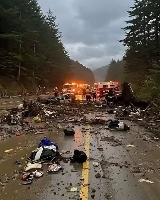 The area remains inaccessible to motorists, with no indication of when the highway will be reopened.