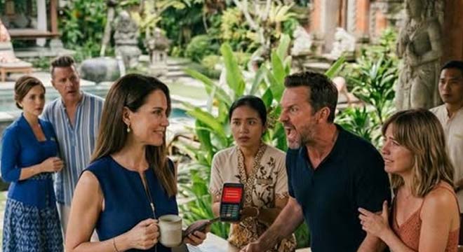 The villa lobby. Derek arguing with a manager. Brooke standing off to the side, mascara running, both suitcases still unopened.