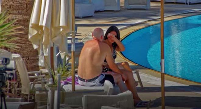 He had brought another woman to a public pool in the middle of the day, but now he wanted privacy.