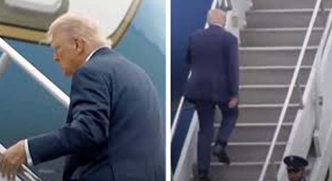 President Donald Trump stumbles while going up stairs to Air Force One, Photo Credit: The Economic Times/Youtube